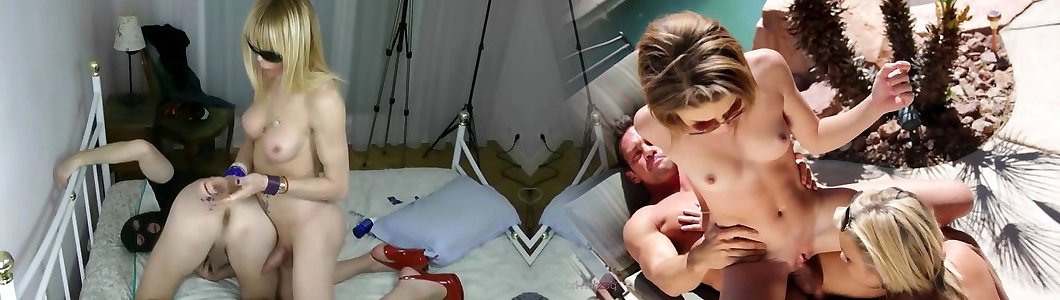 Corseted light-haired c-cup transgirl takes boy&039;s weenie deep up her backside