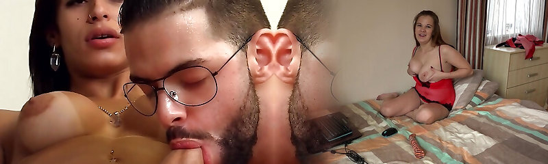 Brown-haired ladyboy with small tits gives her boyfriend a