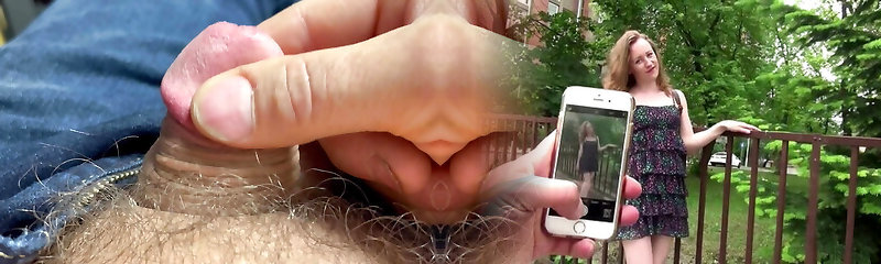viendo porno en su teléfono inteligente, sapphire pone rígida su enorme salchicha trans y comienza a acariciarla en la cámara para ti