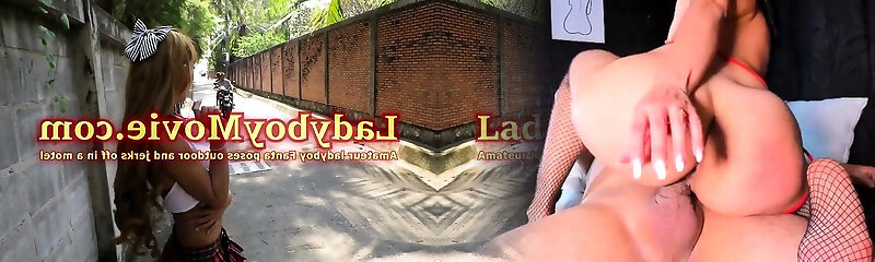 lace es genial en esta transexual en solitario masturbándose en la cama