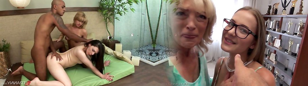 Interracial Trans Threesome - Tattoo Girl Shares BBC with mature redhead chubby hairy dildo Ladyboy - Anal, ATM