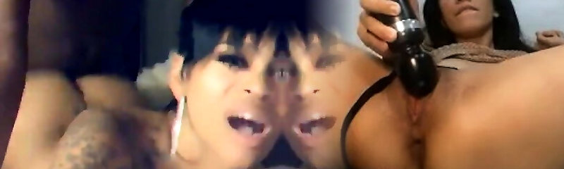 Tattooed slut gets toyed and analed widened by latina shemale