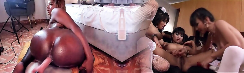 Hung Brazilian trannies gangbang hot latina girl while sucking each other