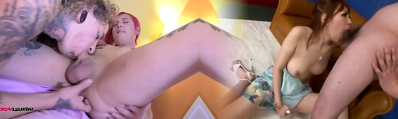 Red-haired plowed by massive tranny dick