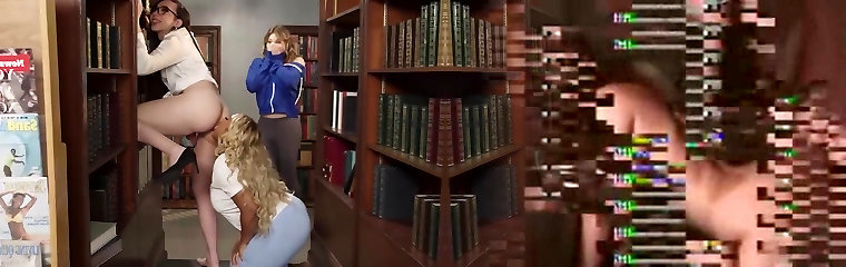 Curvy Blonde Ebony Pleases Two Sexy Pretty Trannies In the Library In a Insatiable Threesome