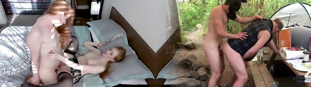 Skinny tgirl takes his butt hole with her pulsing pecker