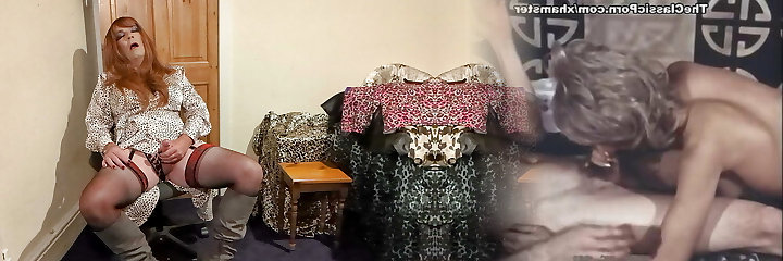 Boss ladyboy in stilettos and tights shows off fabulous feet and cock