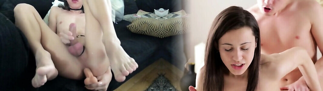 Big Dick Girl strokes her Girl-Cock and Shows her Feet