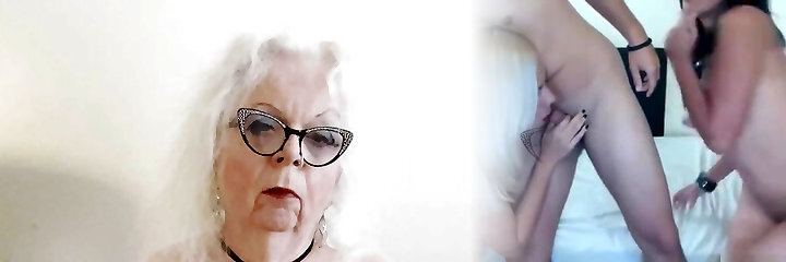 Platinum-blonde on dark haired SheLesbians playing with a camera and their shelesbian cocks while kissing each other and getting rock hard and