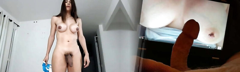 Sexy Shemale With Big Tits Jerking Her Huge Bone Off