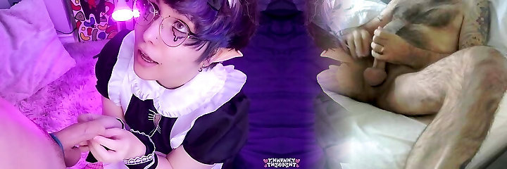 Charming femboy maid gives a sucky-sucky without happy ending