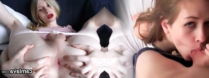 Cute Slender Blonde Tranny Inserts Her Pipe In the Sphincter Of a Young Plumber After Sucking His Spear
