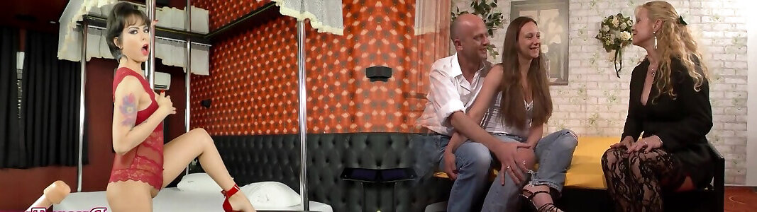 Youthful t-girl with good-sized spunk-pump trades fellatios before riding a cute firm wood