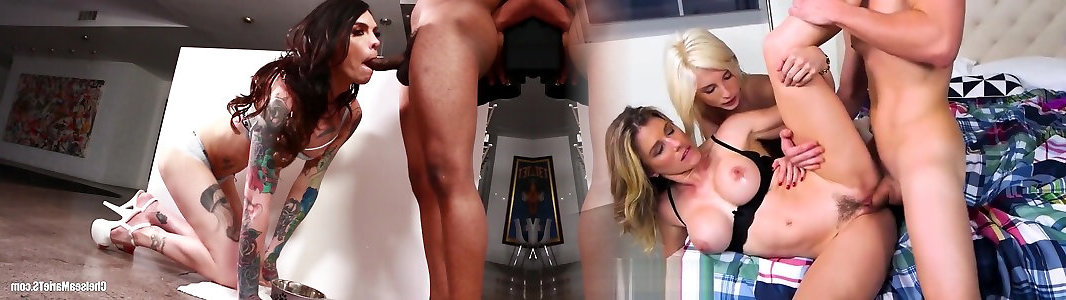 Two tempting T-girls are fucked by one super-hot blooded tattooed stud