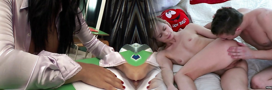 Eye catching school gals get rid of uniforms to work on dousing pussies