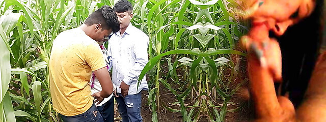 Indian Pooja She-creature Boyfrends Took A New Friends To Pooja Corn Field Today And Three Frends Had A Bunch Of Fun In Sex