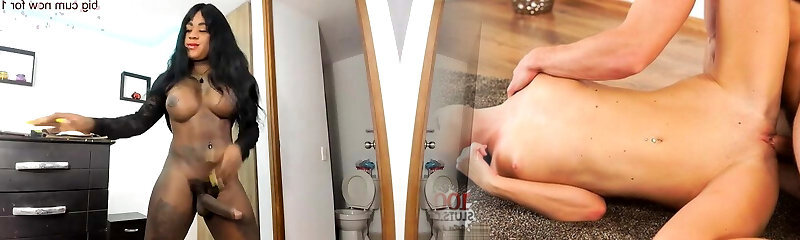 Big ass ebony shemale Perla Lohan sucks and fucks guy anal