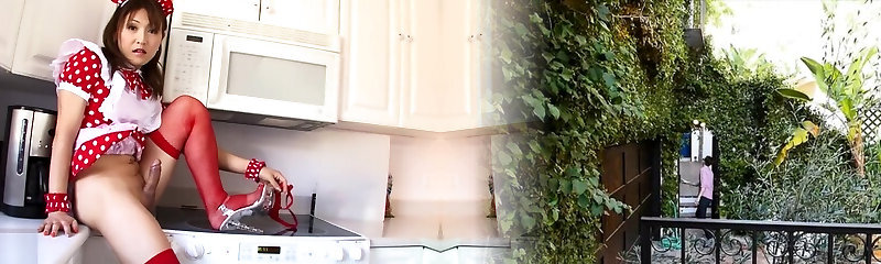 Purple satin lingerie is extraordinaire on a solo Asian tranny