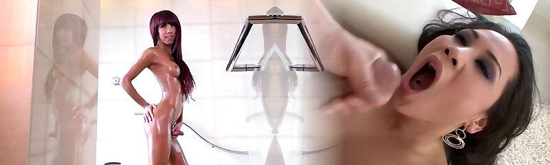 Self blowjob and spunk swallowing transsexual Jessica Bloom