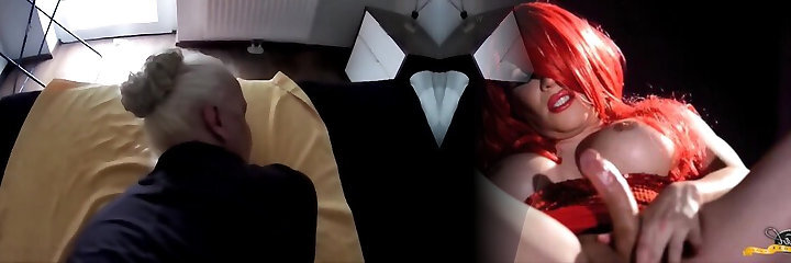 Mature Ava Devine in stockings having romp with shemale Vanity